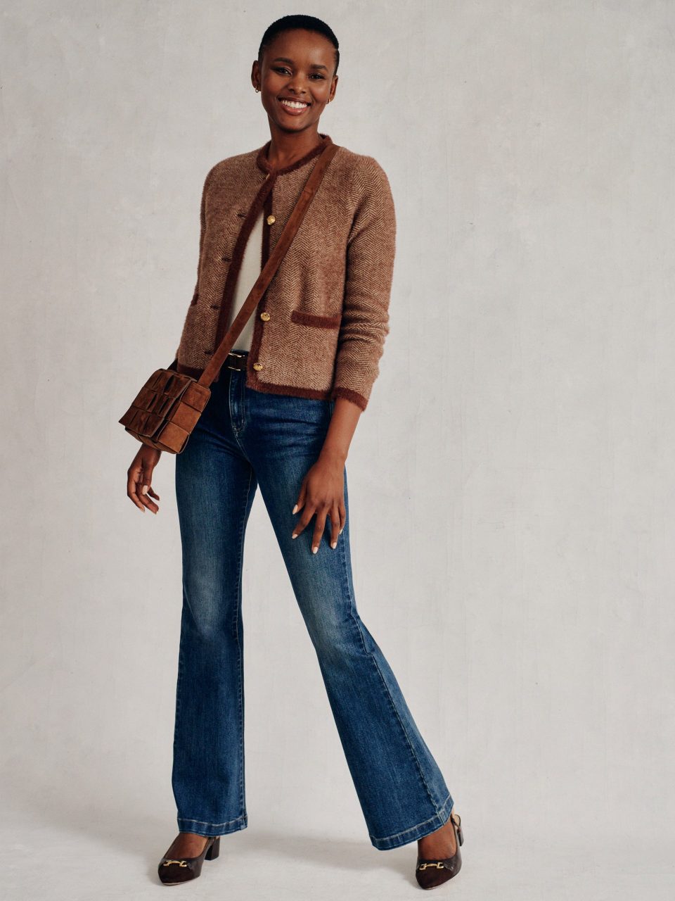Inez Cardigan in Herringbone Jacquard