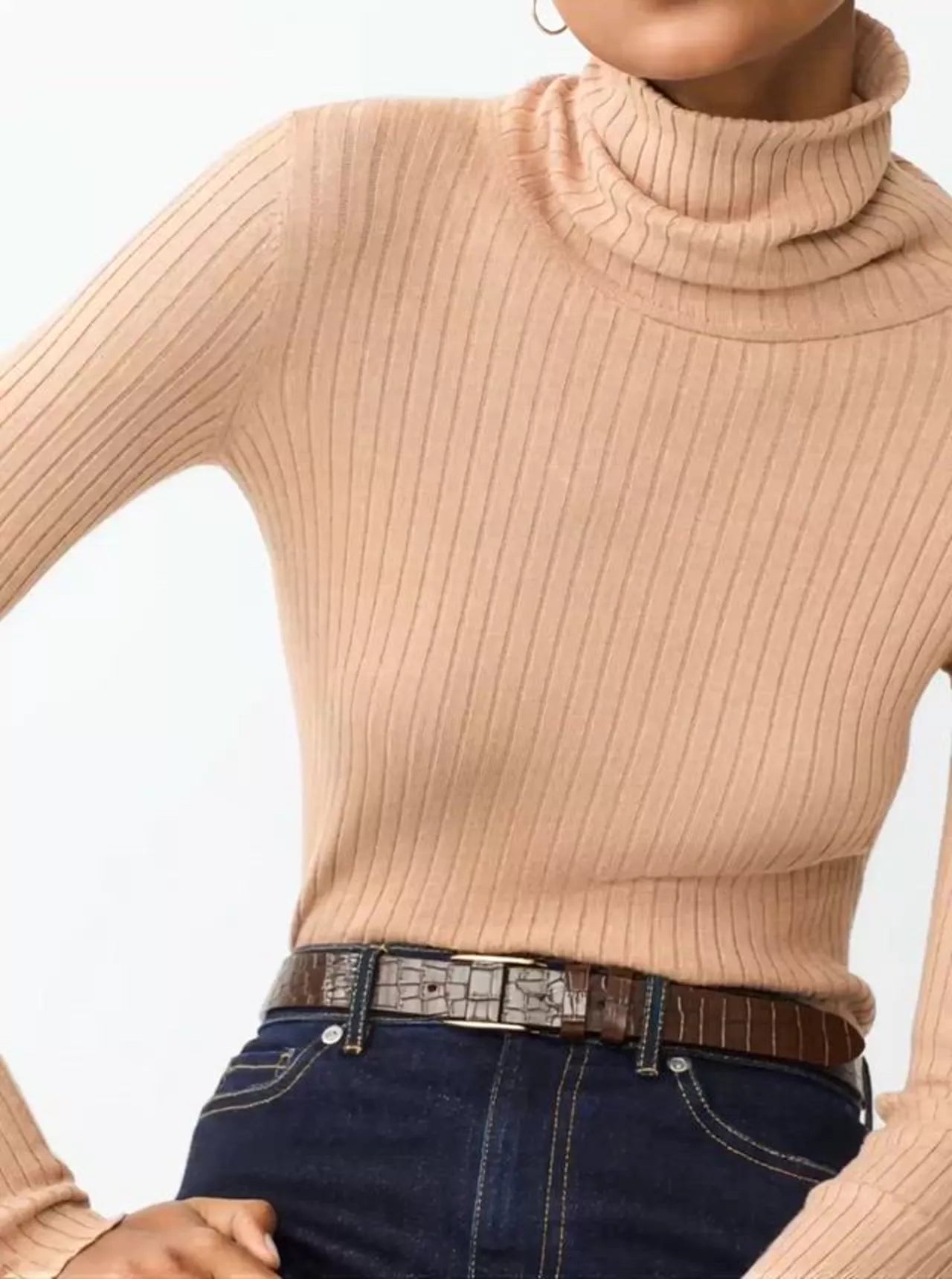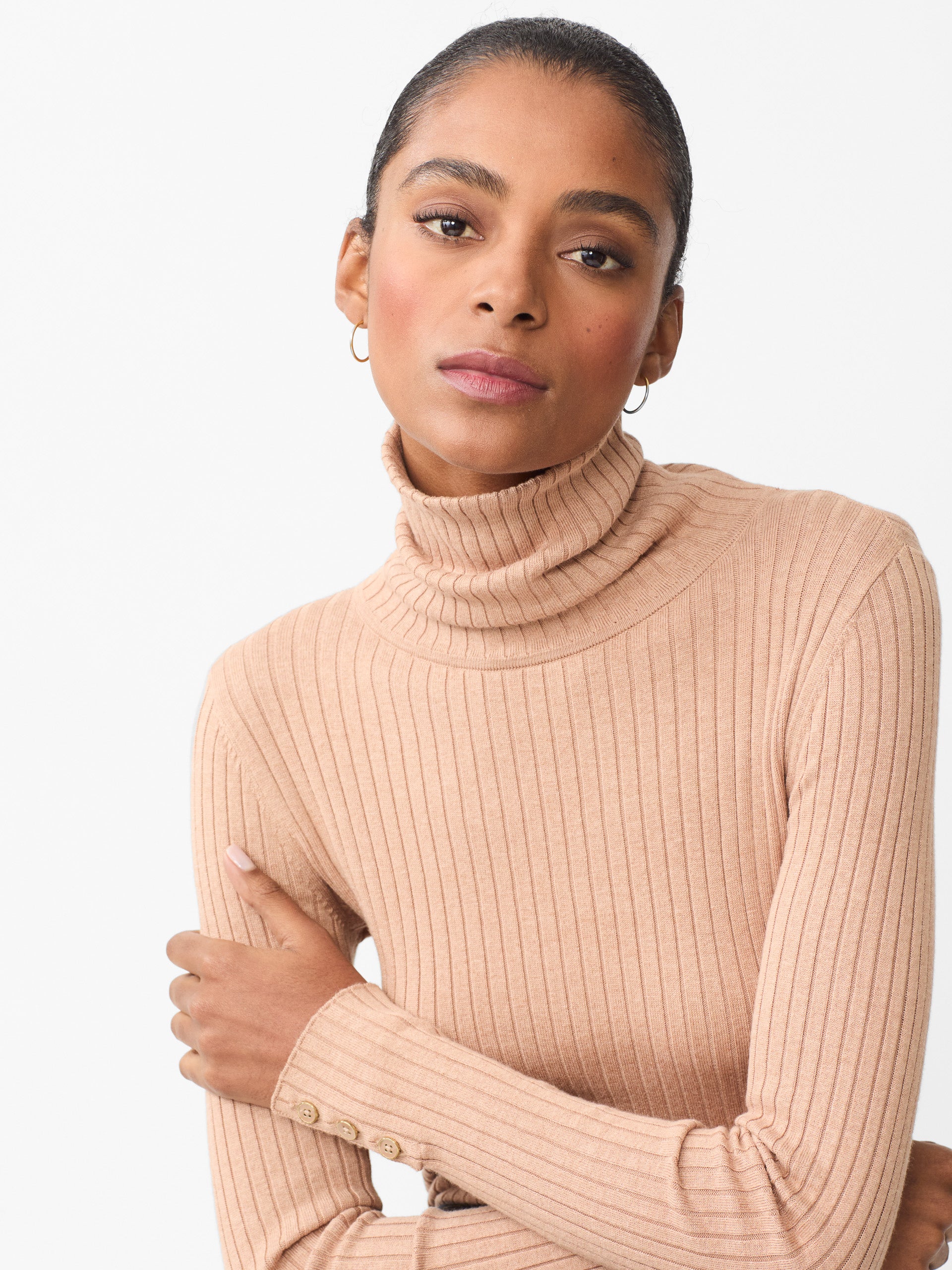 Long Sleeve Turtleneck Buttons at cuff Stretch/Ribbed 54% Cotton, 44% Modal, 2% Spandex Hand wash cold. Lay flat to dry. Imported. Size & Fit 24.5″ long from top of center back (size M) Model is 5’9″ and wearing size XS