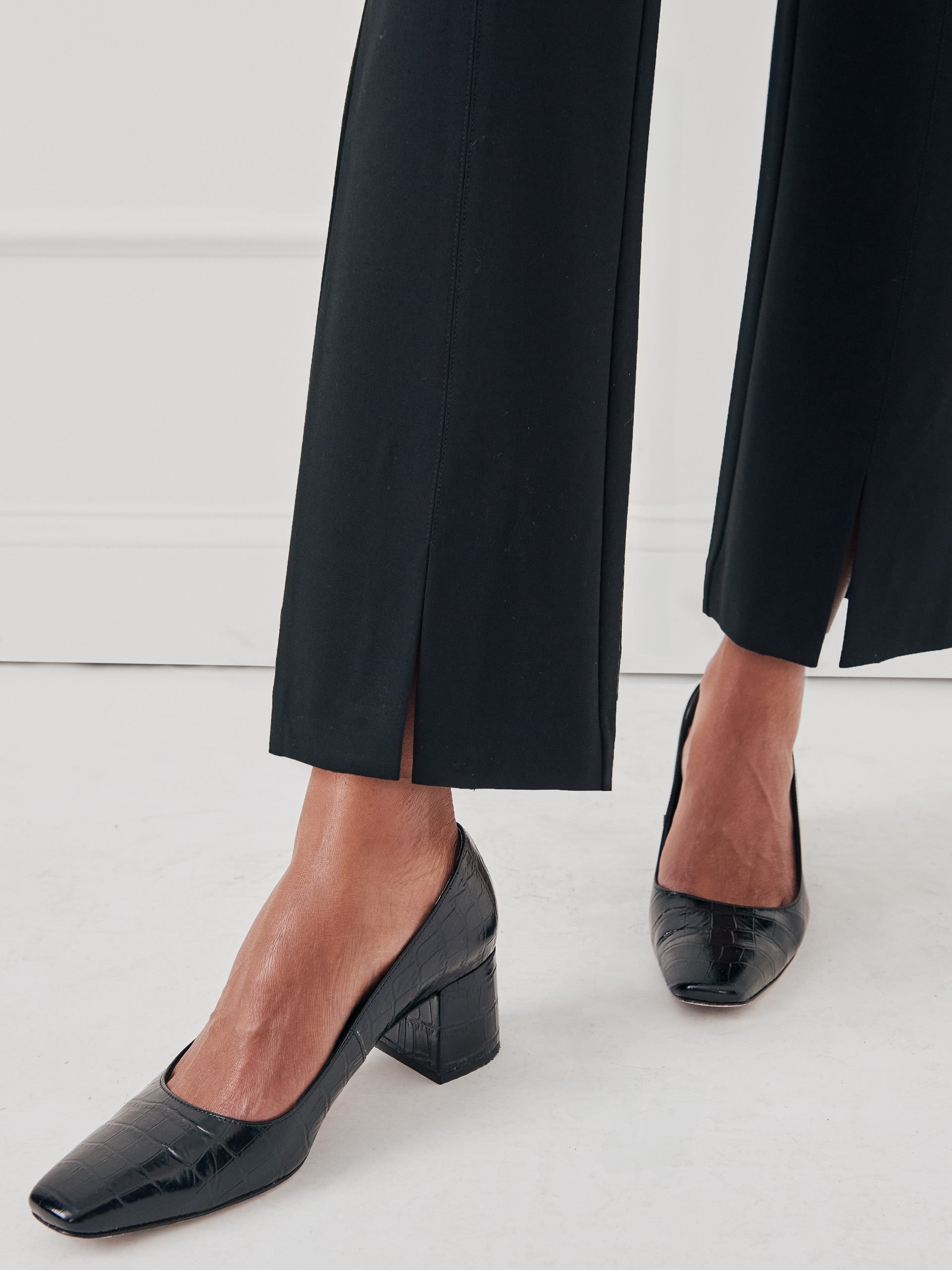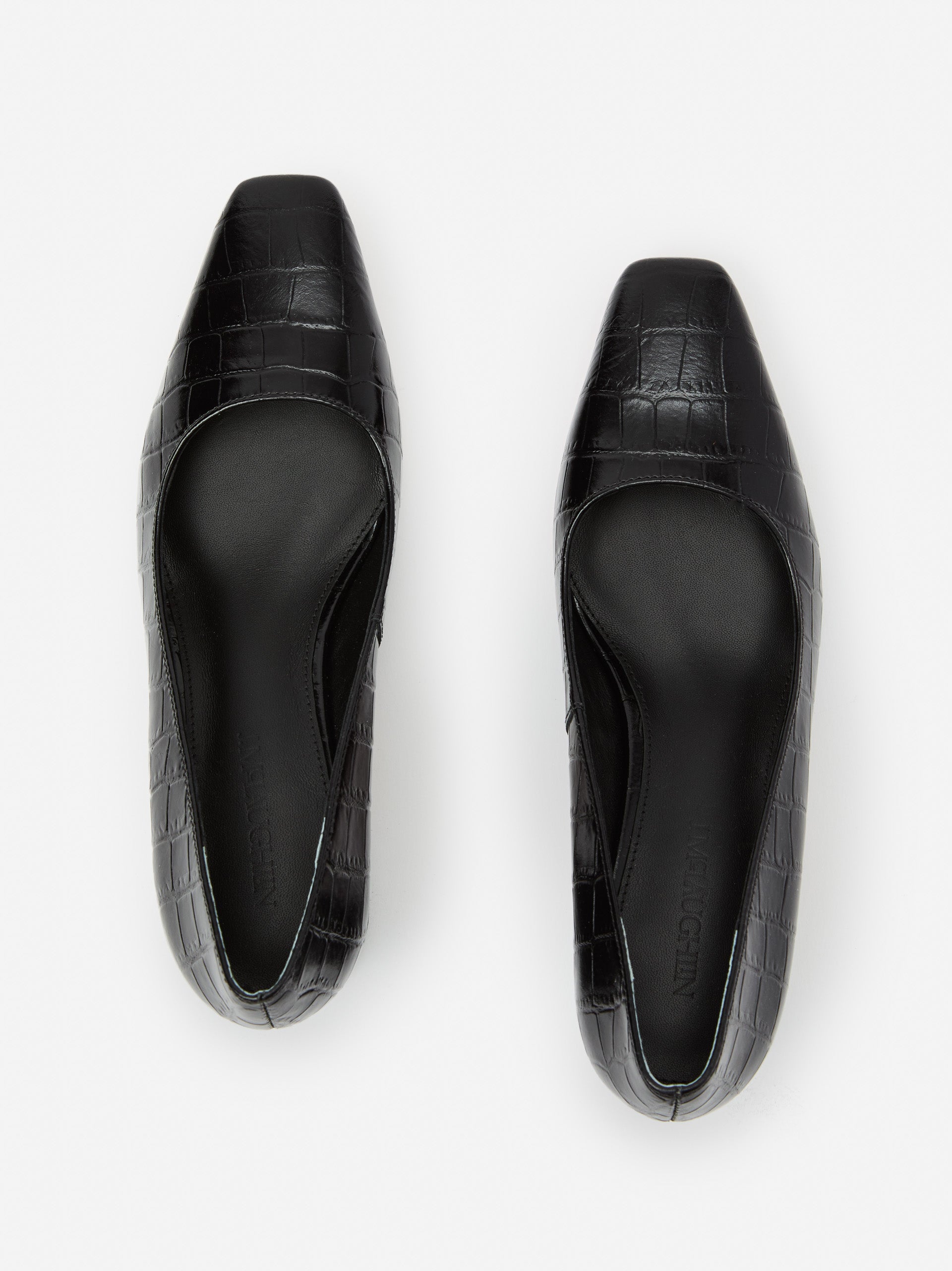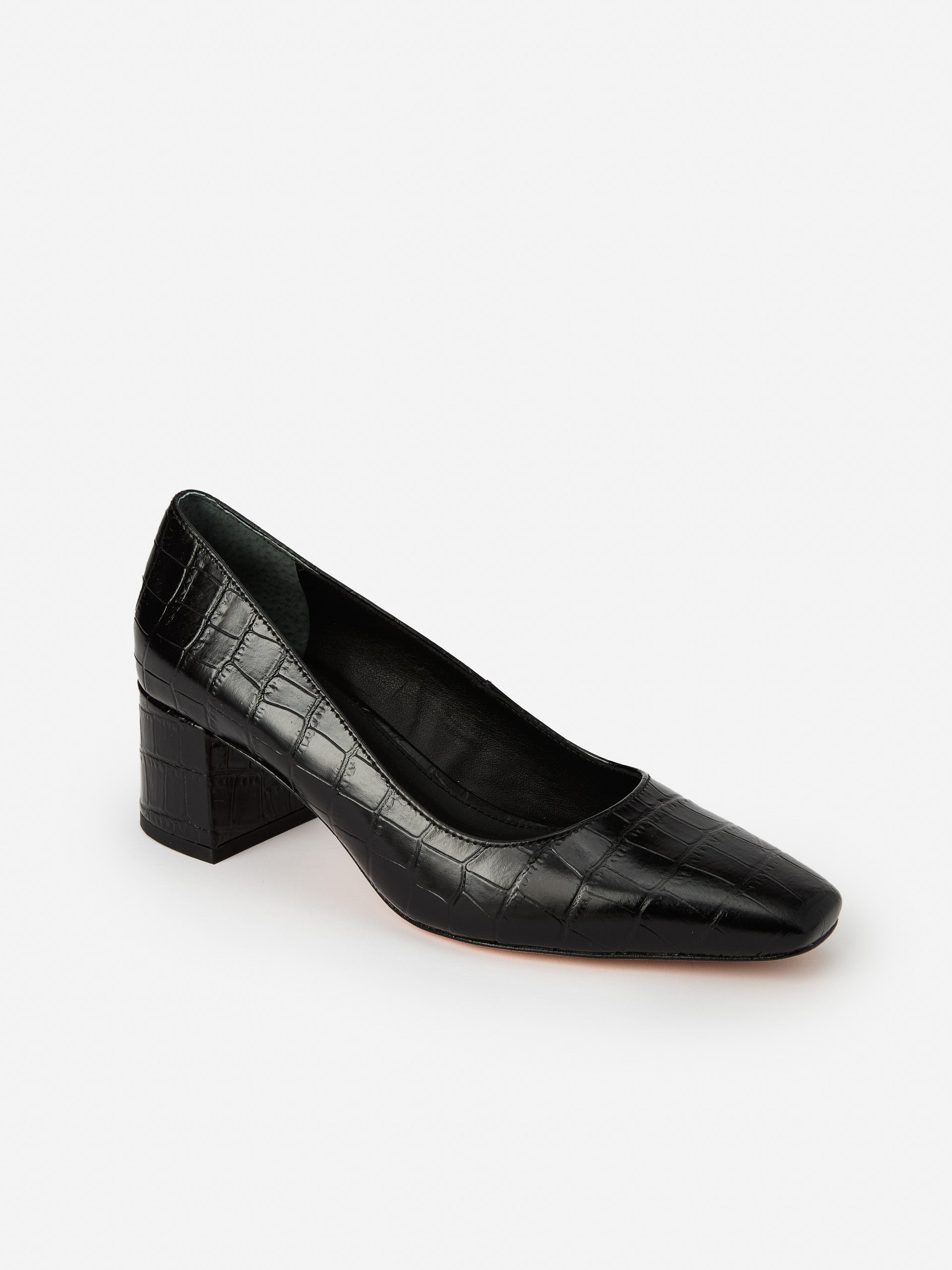 With a retro vibe, a low block heel, and in an embossed crocodile, the Feodora effortlessly pairs with your work and weekend pieces.