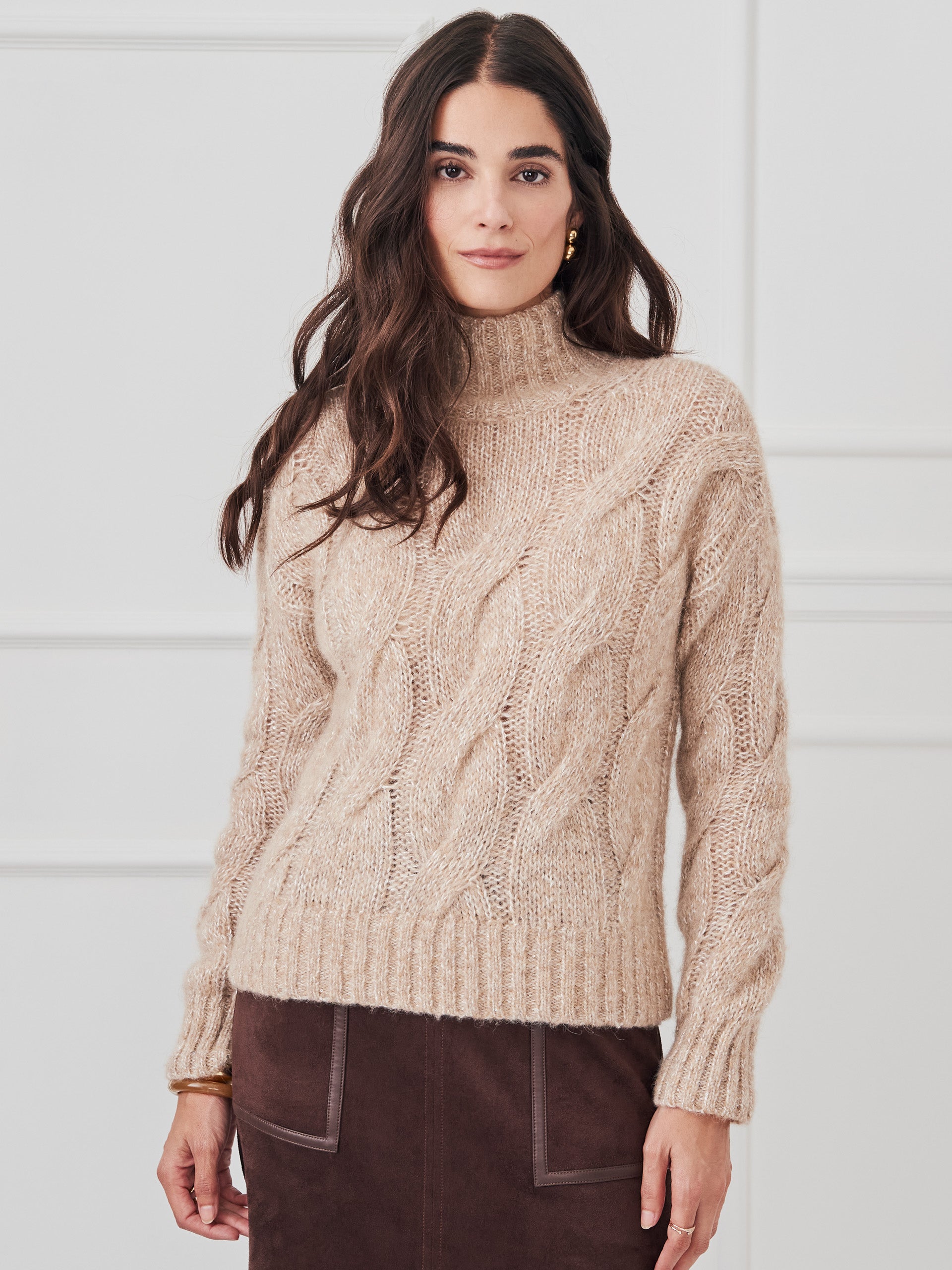 Katerina is your classic cable with a twist—literally, a twinkle. A touch of sequin woven into a soft alpaca-merino blend makes this turtleneck sweater feel festive without trying too hard.