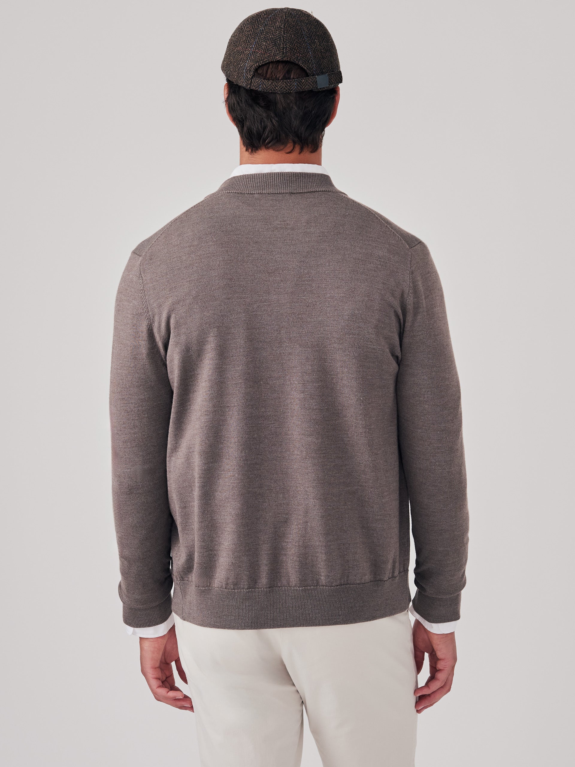 Long sleeves Baseball collar Full zip Ribbed trim 75% Merino Wool, 25% Silk Machine wash cold. Lay flat to dry. Imported. Size & Fit27″ long from top of center back (size M)